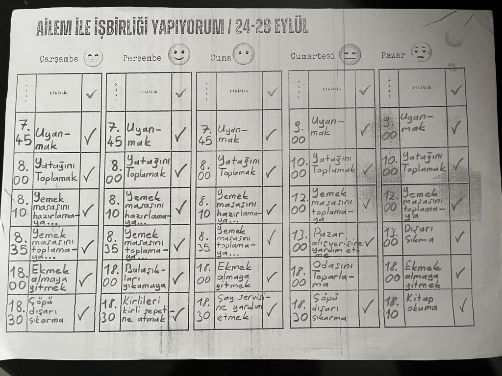 Yaşam Becerileri projesi kapsamında Eylül ayında Aile Hayatım kategorisinde zaman yönetimi becerileri kazanma etkinliği ve aile ile iş birliği etkinliği yapıldı.