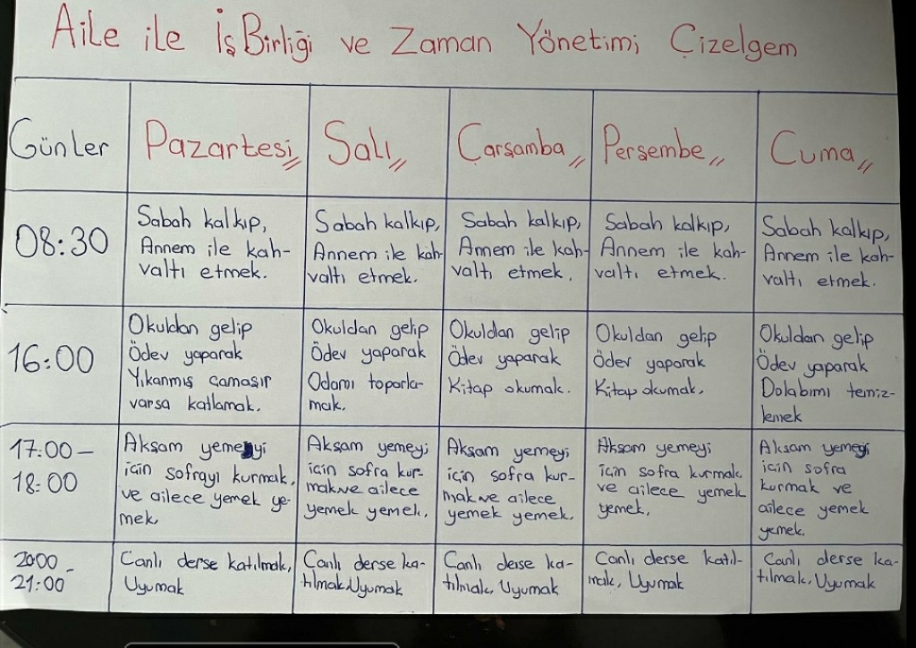 Öğrencileimiz, bu etkinlikler sayesinde aile içi yardımlaşma ve zaman bilinci kazanma konularında farkındalık kazandı ve iş birliği bilinci geliştirmiş oldular.